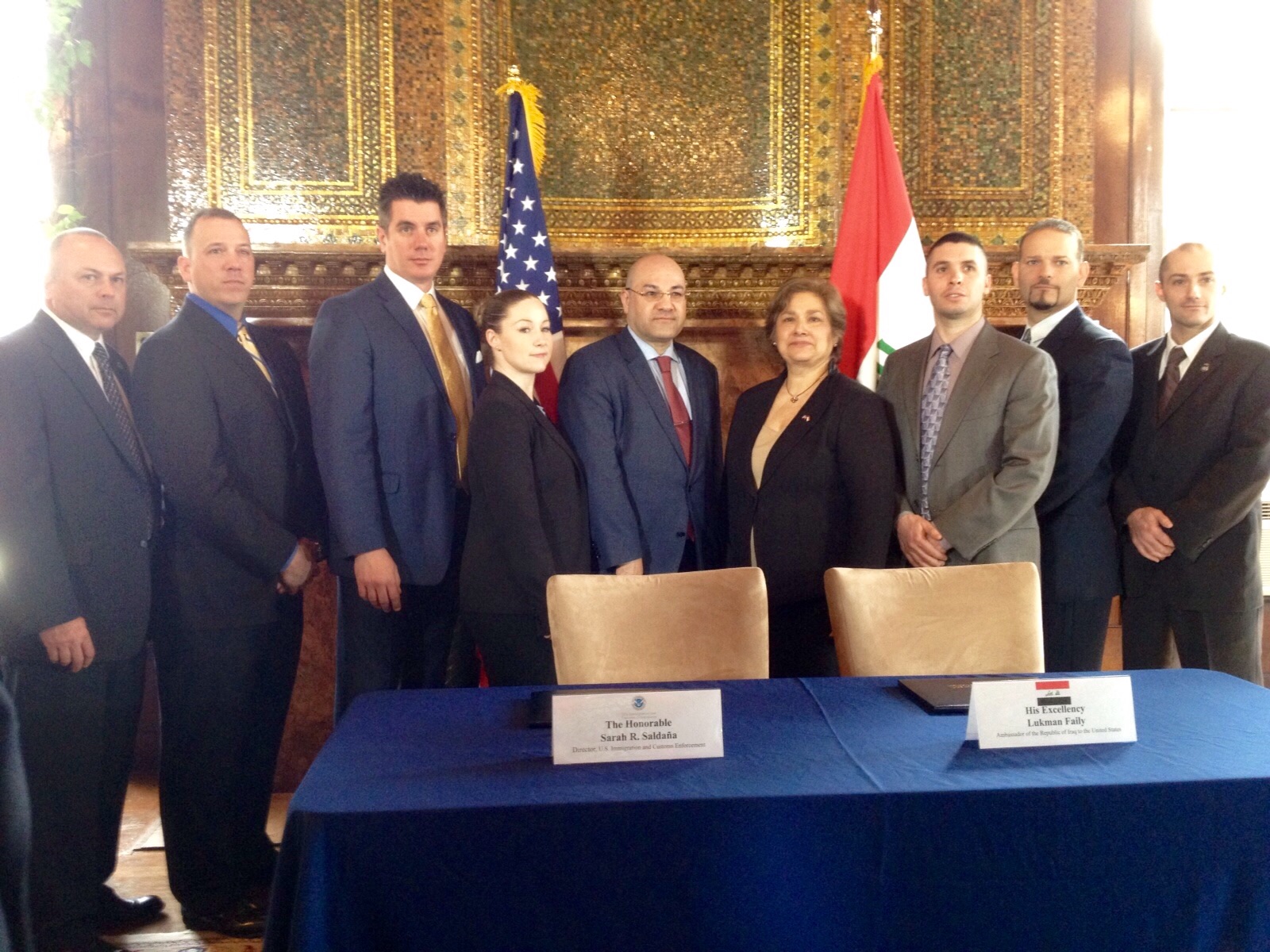 لقد عملت السفارة وبشكل وثيق مع دائرة الهجرة والجمارك الامريكية، ومكتب تحقيقات الامن القومي ودائرة الجمارك وحماية الحدود الامريكية، ومكتب المدعي العام لمنطقة جنوب نيويورك لإعادة القطع الاثرية الى العراق. حيث تلقّى مكتب تحقيقات الامن القومي في تموز عام 2008 معلومات تفيد بان أحد تجار الاثار في مدينة دبي كان يبيع الاثار المسروقة من العراق في الولايات المتحدة، وبناءً على تلك المعلومات، فُتحت تحقيقات استمرت سنوات طوال لمعرفة حقيقة تلك القطع.