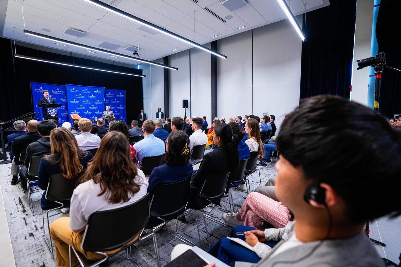 حلَّ رئيس مجلس الوزراء السيد محمد شياع السوداني، مساء اليوم الأربعاء (بتوقيت بغداد)، ضيفاً في ندوة حوارية أقامتها، على شرف سيادته، جامعة جون هوبكنز في العاصمة الأمريكية واشنطن، بحضور عدد من الأساتذة والطلبة، حيث فتح باب النقاش وأجاب سيادته عن الأسئلة المطروحة، التي تتعلق بالتحديات الأمنية والاقتصادية والسياسية والأوضاع في المنطقة.