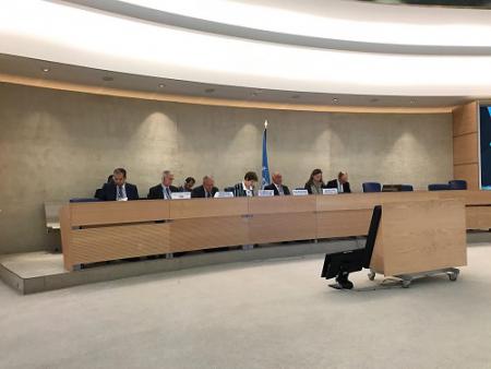 قدم مبعوث العراق الدائم لدى الامم المتحدة في جنيف السفر مؤيد صالح التقرير النهائي لاعمال الدورة 34 لمجلس حقوق الانسان التي اختتمت اعمالها في 24 اذار 2017.
