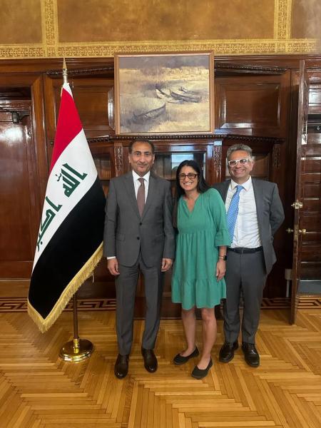 وقدم السفير لـ د. منى هدية تقديرية، وناقشا آمالهما في أن يصبح العراق أكثر تقدماً وأماناً وازدهاراً بفضل جهود المثقفين والعراقيين الموهوبين مثل د. منى.