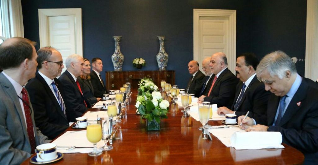 رئيس مجلس الوزراء الدكتور حيدر العبادي يلتقي في واشنطن بنائب الرئيس الامريكي السيد مايك بنس