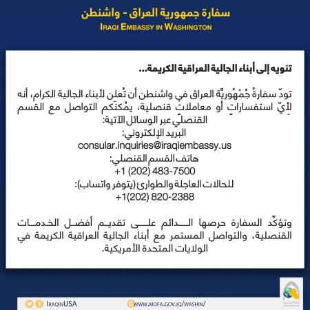 تنويه الى ابناء الجالية العراقية الكريمة
