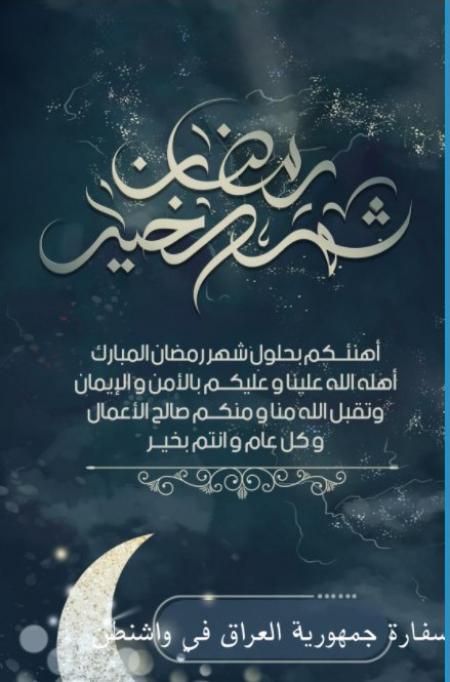 The Embassy of the Republic of Iraq in Washington D.C. would like to extend its best wishes to the Iraqi community in the United States of America on the beginning of the holy month of Ramadan. On this occasion, may God’s blessings shower our country and its people with prosperity, security, and safety.