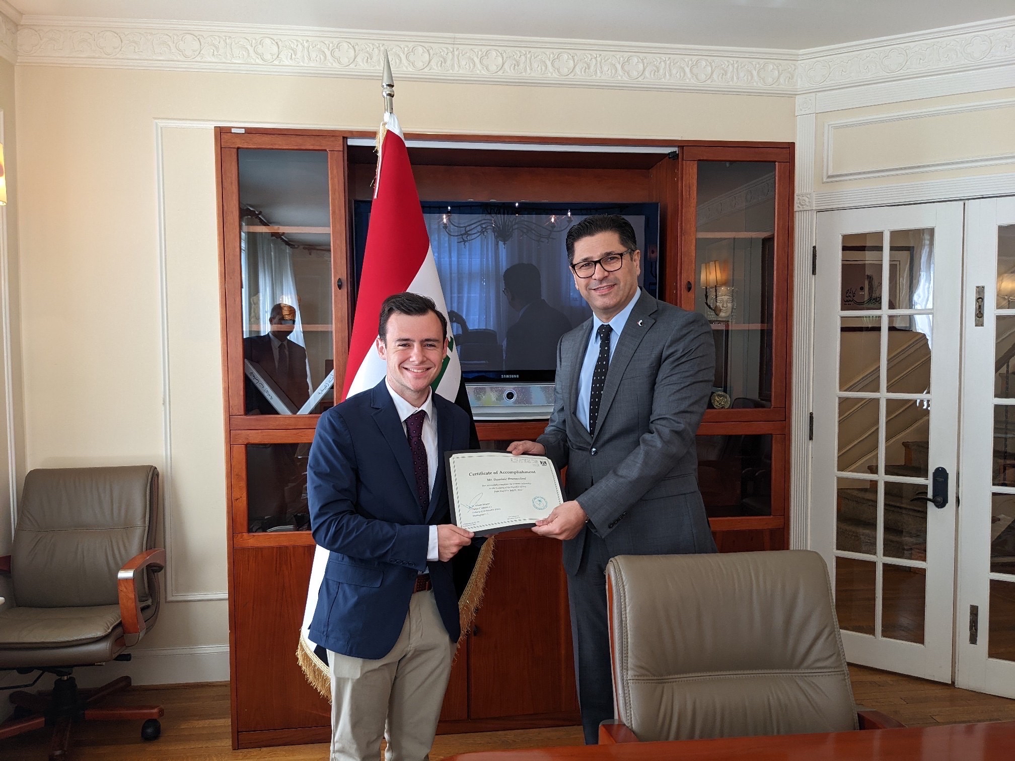 The Embassy recently celebrated the conclusion of its summer internship program. We were fortunate to have five stellar interns who contributed to different activities throughout the summer, including participating in workshops about Iraqi culture, promoting tourism to Iraq and researching and writing about political affairs and bilateral US-Iraqi relations. We thank them for a wonderful summer!