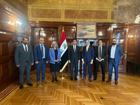 Ambassador Nazar Al Khirullah met with the President of the National Endowment for Democracy, Mr. Damon Mac Wilson, along with his specialized research team in the Middle East and Iraq regions. During the meeting, ways of joint cooperation and expansion of research and training partnerships were discussed in accordance with democratic goals in Iraq