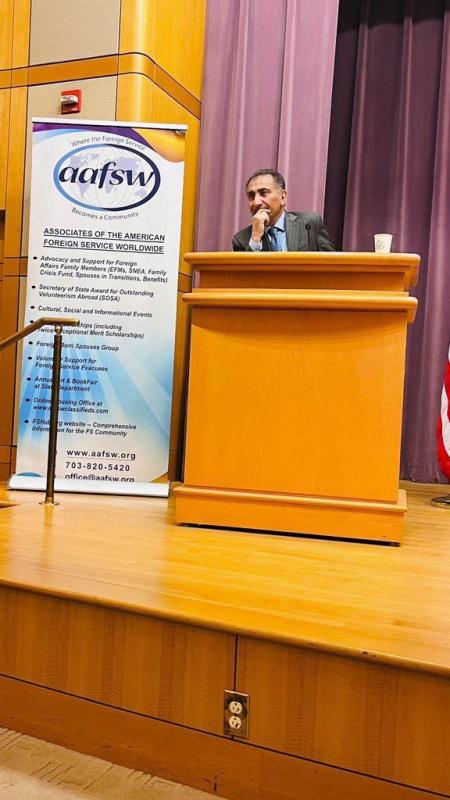 Washington, January 30, 2025 – The Ambassador of the Republic of Iraq to the United States delivered a keynote address at a symposium titled “Iraq and Regional Challenges,” organized by the American Association of the Foreign Service Worldwide (AAFSW) at the U.S. Department of State. The event was attended by U.S. diplomats, ambassadors, and representatives from Arab and foreign missions.