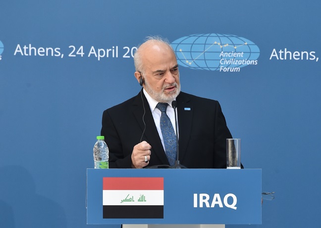 Foreign minister Dr. Ibrahim Al-Jaafari concludes his participation in the ancient civilizations forum in Athens, on the sideline of this forum he met a number of foreign ministers of the participated countries, such as China, Islamic republic of Iran and Arabic republic of Egypt.