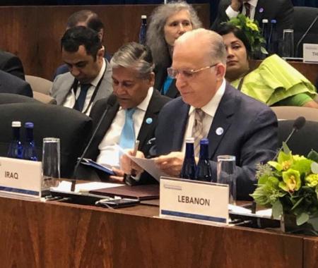 Minister Alhakim called on concerted efforts by all countries to eliminate terrorism, and the development of a global program to counter extremist ideology, pointing out that the Iraqi government in the post-defeat of Da’esh began to implement an expanded program to deal with the crisis of the displaced, and their return to the cities through the reconstruction of infrastructure and the provision of basic services.