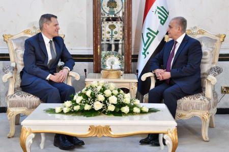 Foreign Minister Mohamad A. Alhakim received a copy of the credentials of US Ambassador to Baghdad Mr. Matthew Tyler. The two sides discussed ways to improve bilateral relations and the importance of enhancing cooperation opportunities at various levels to meet the aspiration of both peoples.