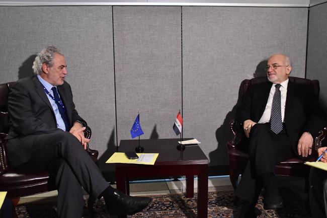 Foreign Minister Dr. Ibrahim Al-Jaafari met with the European Commissioner for Humanitarian Aid and Crisis Management Mr. Christos Stylianides on the sidelines of the 73rd session of the United Nations General Assembly in New York and reviewed the overall political situation in Iraq and the formation of the new government. .