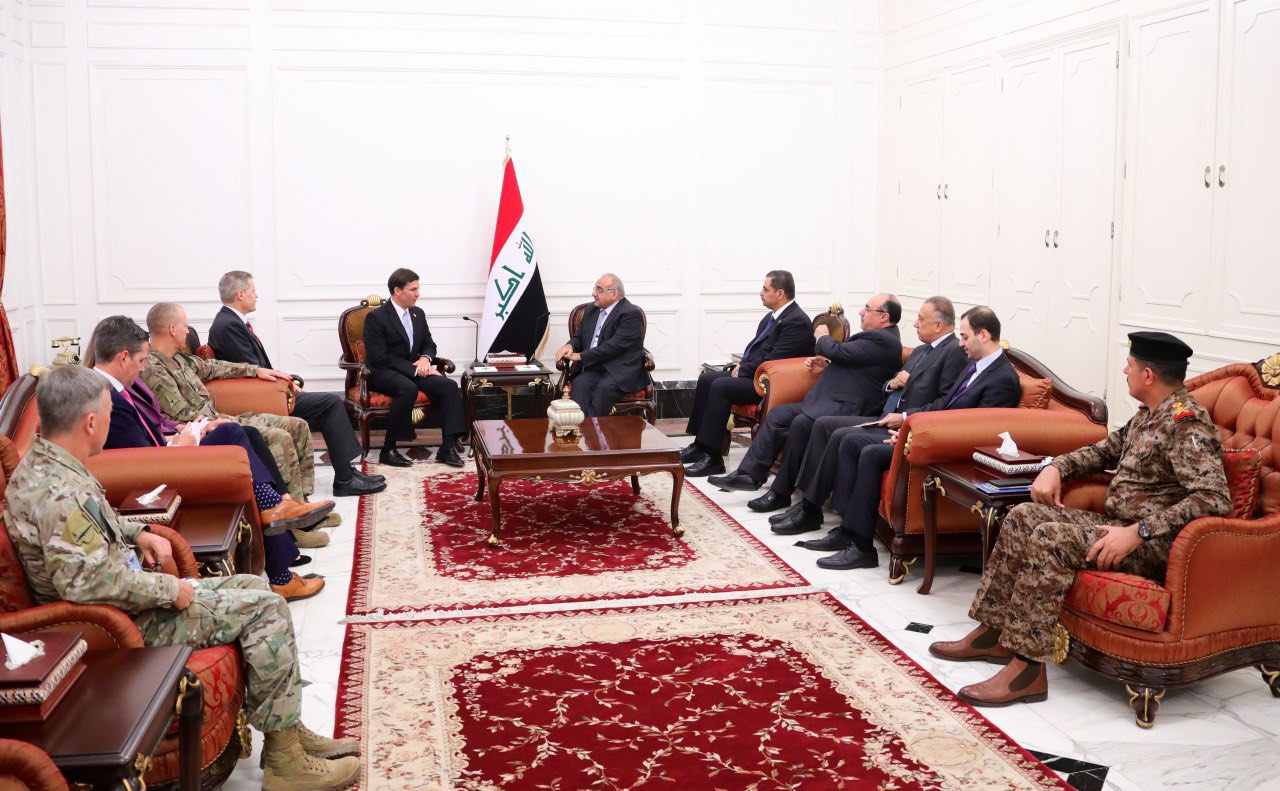 His Excellency Prime Minister Adil Abd Al-Mahdi received this Wednesday, Secretary of Defense Mark T. Esper, They discussed bilateral between the two countries, reaffirming the continuation of cooperation in countering terrorism, supporting the government's efforts to promote security, stability and national sovereignty, Besides discussing the disturbing developments in Syria, especially with regard to terrorists imprisoned in Syria and the possibility of their escape and infiltration into Iraqi territory, In addition to displacement as a result of military operations, In addition to displacement as a result of military operations, They also discussed the positive role played by Iraq in the region and its relations with all neighboring countries.