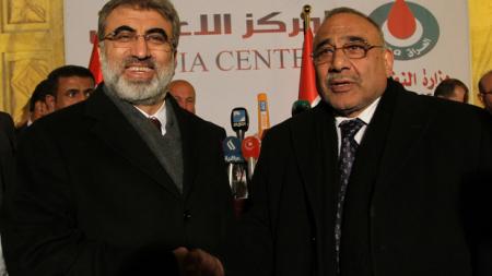 Iraqi Minister of Oil Adil Abdul-Mahdi, right, and Turkey's Minister of Energy and Natural Resources, Taner Yildiz shake hand after a press conference following a meeting at the office of Abdul-Mahdi in Baghdad, on Jan. 18.