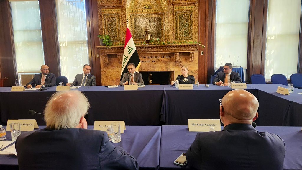 On Tuesday, April 8, 2025, the Embassy of the Republic of Iraq in Washington, D.C., hosted a roundtable discussion with a group of researchers and experts from the Washington Institute for Near East Policy. The meeting focused on the trajectory of Iraq-U.S. relations and ways to strengthen bilateral cooperation, particularly in the economic and energy sectors, by attracting specialized American companies to invest in Iraq.