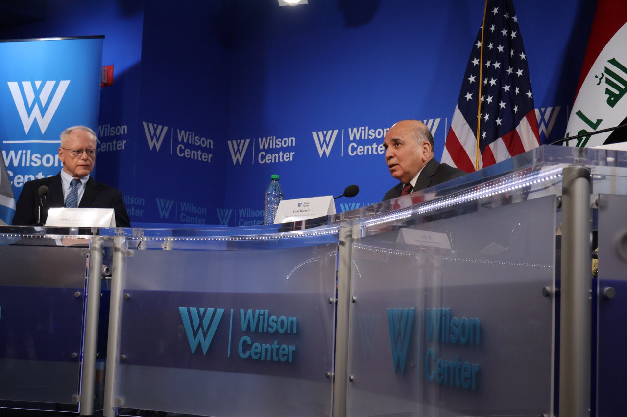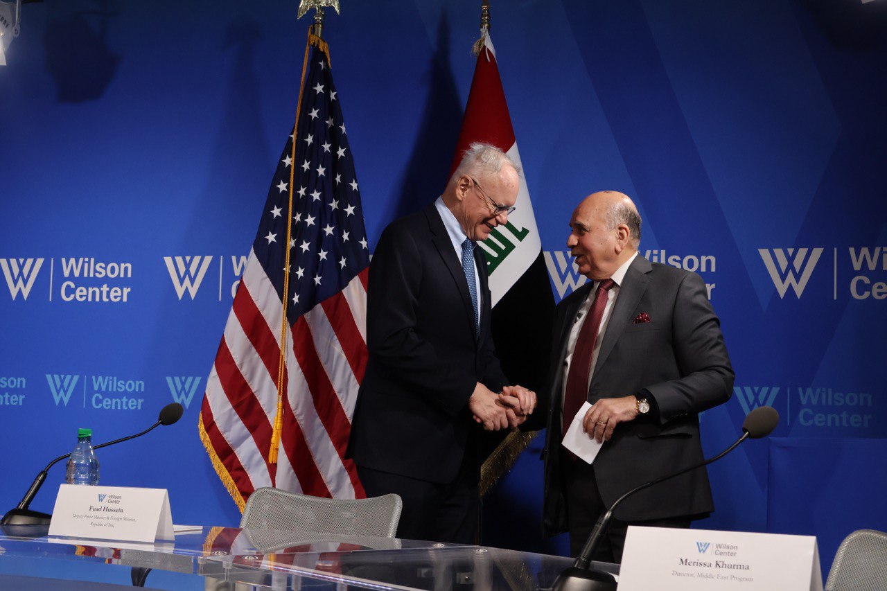 The Wilson Center's Middle East Program hosted Iraq's Deputy Prime Minister and Foreign Minister, Dr. Fuad Hussein, on February 13th, 2023, in Conversation with Ambassador James Jeffrey, Chair of the Middle East Program and former US Ambassador to Iraq. During the Conversation, the two parties discussed the Iraqi American relations and their prospects in supporting stability efforts in the Middle East, the common ties between the two countries, and each party's aspiration to further ratify the cooperative economic frameworks in light of the Strategic Framework Agreement and displaying Iraq's role in bringing regional views closer and its cooperative relations with both Egypt and Jordan within the Trilateral Cooperation Mechanism's framework. In addition to Iraq's close cooperation with Saudi Arabia and the rest of the Gulf Cooperation Council countries and its efforts to host the third Baghdad Conference to proceed with building bridges of cooperation and promoting regional dialogue that enhances mutual benefit.