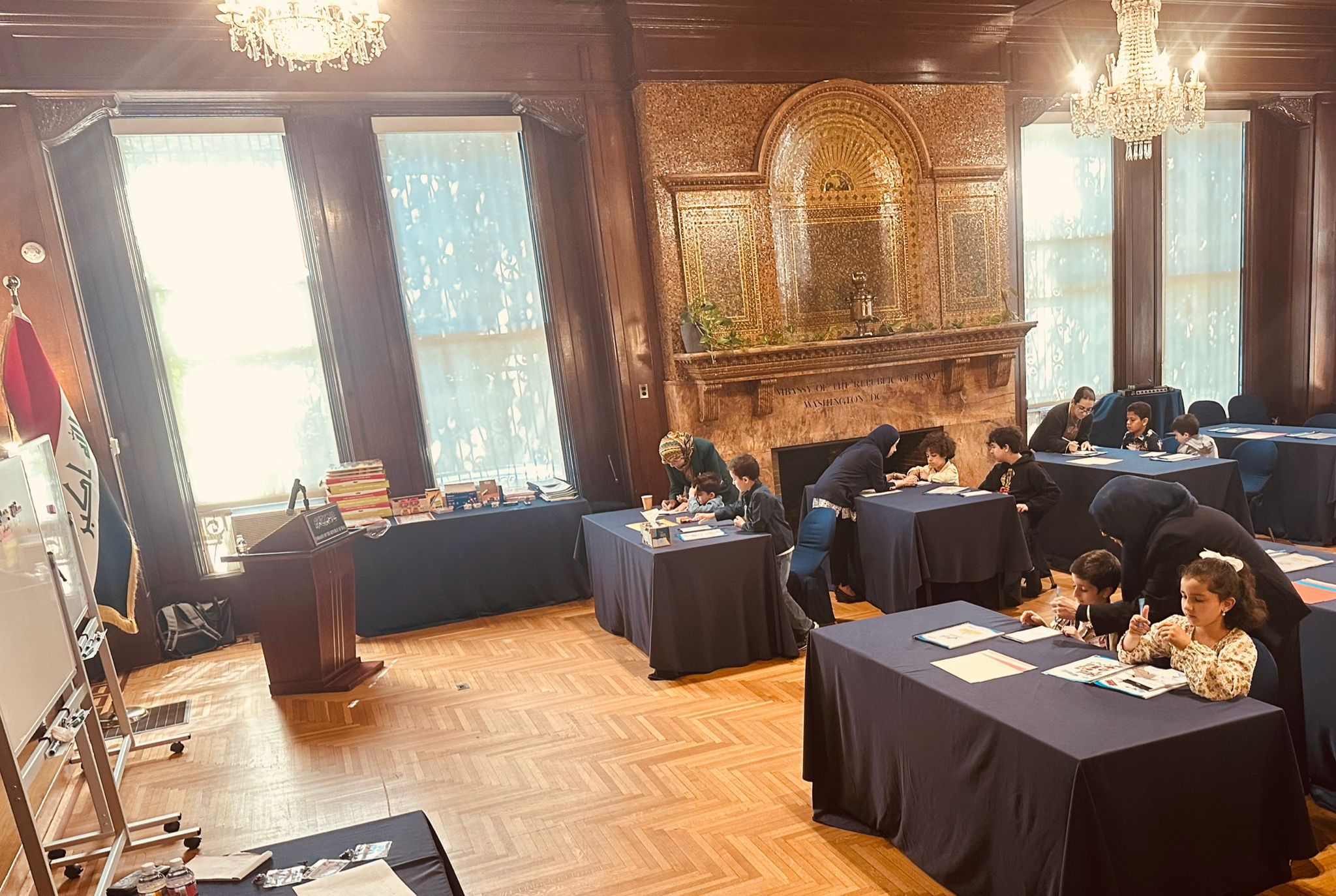 The Embassy of the Republic of Iraq in Washington is pleased to announce the official launch of the “Eduba” educational program, hosted inside the Embassy building. The program warmly welcomed children from the Iraqi community who have registered, in a joyful and celebratory atmosphere.