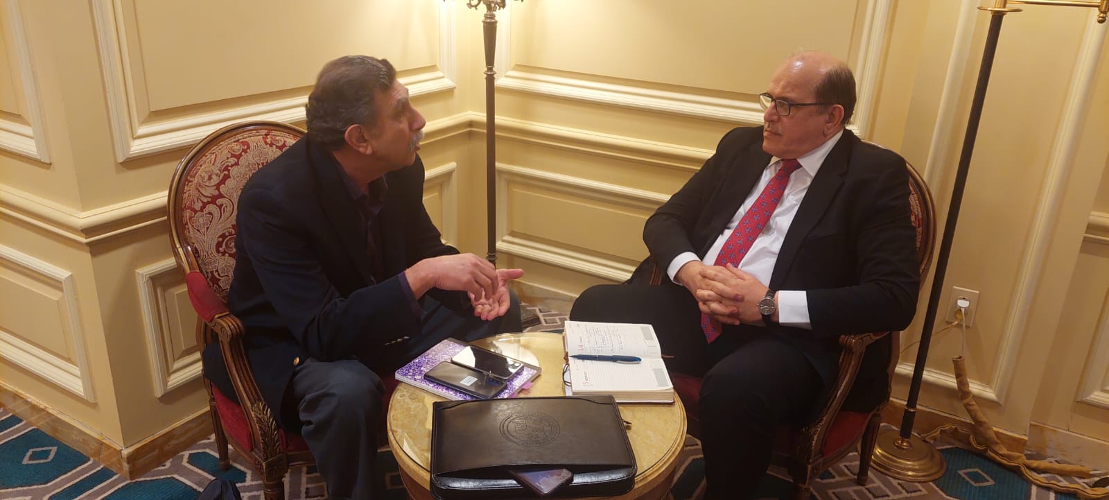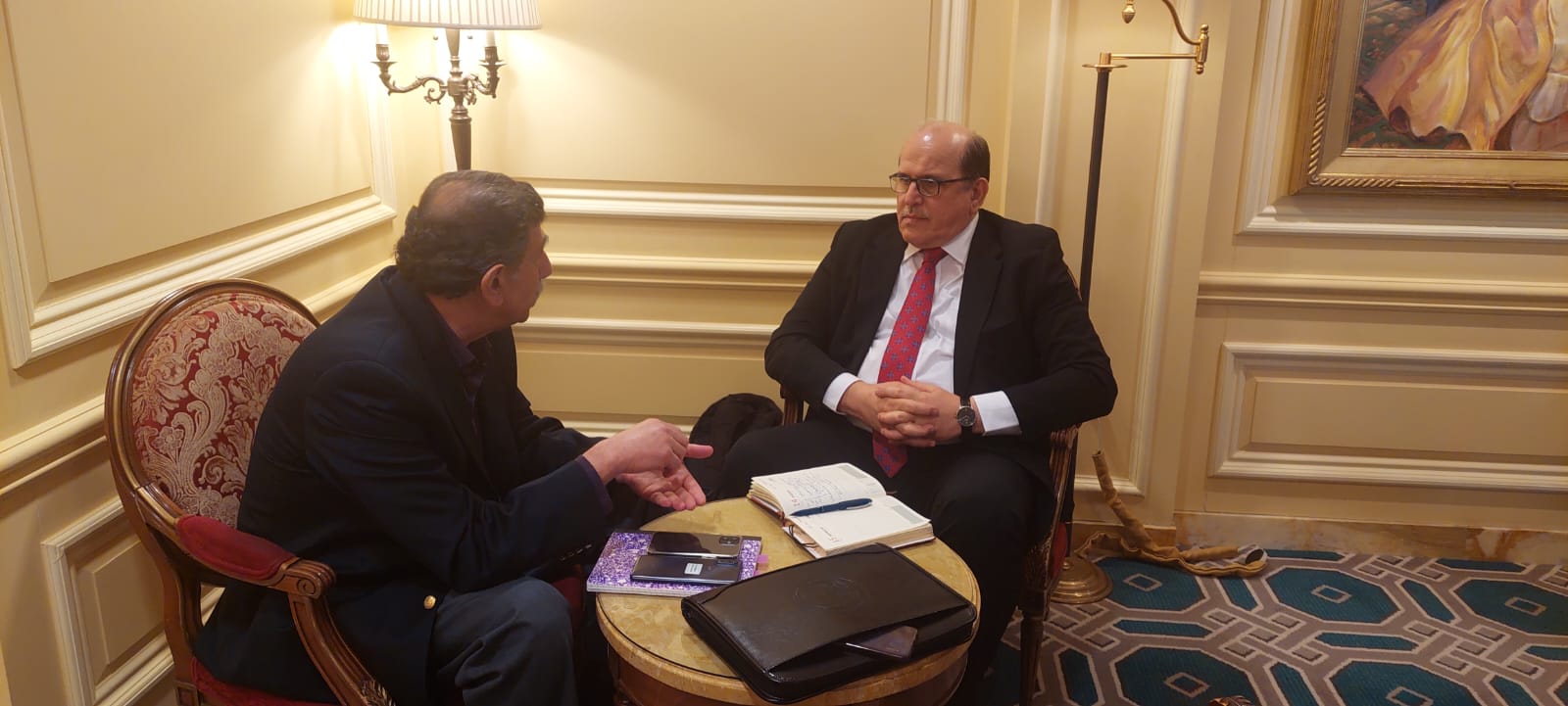Iraqi climate envoy Dr. Ali Al-Lami, met on 2/14/2023, with the Iraqi-American expert, Dr. Saud Amer of the US Geological Survey (USGS) who specializes in remote sensing techniques for water resources in the Office of International Programs of the US Department of the Interior. The meeting focused light on how to benefit from data systems and translate engineering systems designed for this purpose, and discussed issues related to aspects of cooperation and support provided in training Iraqi staff, especially staff of the Ministry of Water Resources, with regard to calculating water quantities, installing sensors for weather phenomena and monitoring natural phenomena by satellite, and training on how to use the Water Resources Monitoring Program as a data-rich and self-sustaining resource.