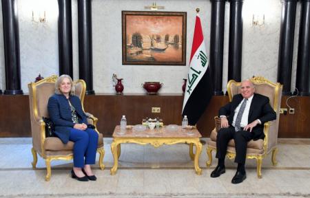 Minister of Foreign Affairs, Mr Fuad Hussein, has received the Ambassador of the United States of America to Iraq, Ms Alina Romanowski. During the meeting, they discussed the bilateral relations between the two countries, and ways of developing the joint cooperation between Baghdad and Washington. The two sides discussed the Iraqi situation and the formation of the new Iraqi government and the obstacles encountered.