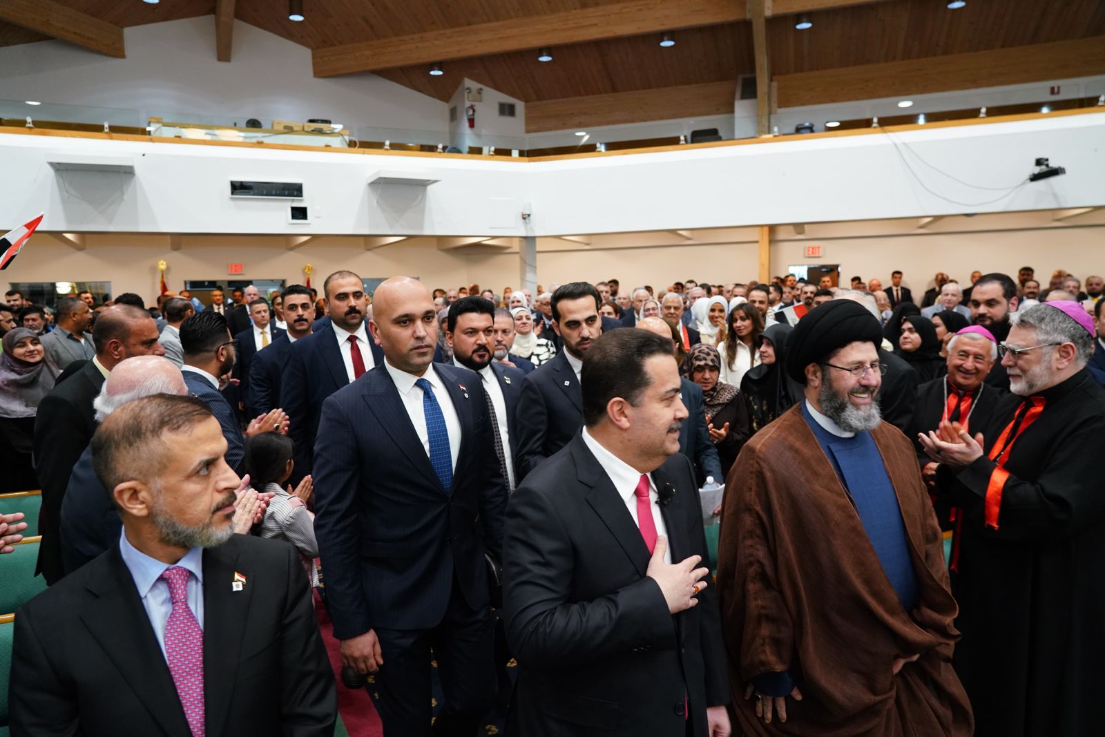 Prime Minister Mohammed S. Al-Sudani met with a large group of the Iraqi community at the Islamic Center in Michigan, as part of his official visit to the United States. The meeting was attended by a diverse group of Iraqi families representing all Iraqi national components.