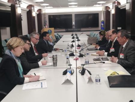 On 13/2/2023, the Iraqi delegation held a session of talks at the US Department of Energy building in Washington, DC, with a delegation led by Assistant Secretary of Energy for International Affairs, Mr. Andrew Light. The meeting discussed Iraqi-US cooperation in the field of energy, including investment in this sector and benefiting from US capabilities and expertise, to develop the Iraqi oil sector and the investment of associated gas in support of the Iraqi national economy and reduce the negative effects resulting from gas flaring and carbon emissions on the Iraqi environment, and to discuss the Iraqi government's plans in this field