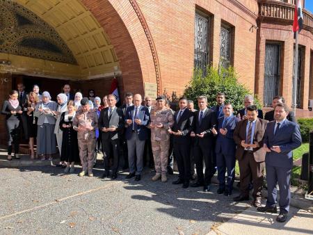 The Embassy of the Republic of Iraq organized a solidarity and mourning gathering where Al-Fatihah Surah was read, out of loyalty and respect to the innocent souls of the brotherly Palestinian people, who were martyred as a result of the Zionist entity’s bombing of the Alma’madani “Baptist” Hospital in the Gaza Strip in Palestine.