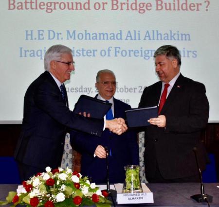 The Ambassador of the Republic of Iraq to the Kingdom of the Netherlands, Dr. Hisham Al-Alawi, signed a framework agreement for diplomatic cooperation between the Iraqi Foreign Service Institute and the Dutch Clingendael Institute.