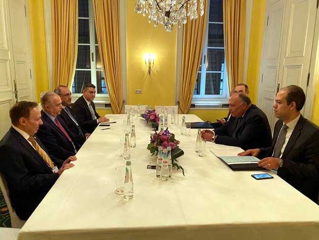 Foreign Minister Mohamad A. Alhakim met with Egyptian Foreign Minister Mr. Sameh Shoukry on the sidelines of the Munich Security Conference / Session (56).