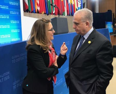Foreign Minister Mohamad A. Alhakim met with Canadian Minister of Foreign Affairs Mrs. Chrystia Freeland on the sidelines of the Ministerial Meeting of the Global Coalition to Defeat Da’esh in Washington.