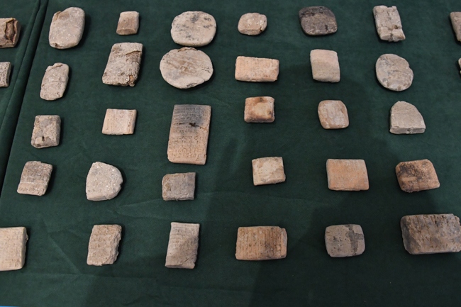Foreign Minister Mr. Mohamad A. Alhakim delivered to the Minister of Culture Mr. Abdul Amir Al-Hamdani antiquities recovered by Ministry from several countries. These pieces included 156 Cuneiform tablets received by the Embassy of the Republic of Iraq in London from the British Museum, and a file containing 250 documents dating back to the second century, which is correspondence belonging to the royal family received by our embassy in Riyadh from the Saudi Commission for Tourism and National Heritage, and a piece received by our embassy in Seoul from a German citizen taken from the Ziggurat Ur, and an antique was received by our embassy in Bern from an Iraqi family residing in Switzerland.