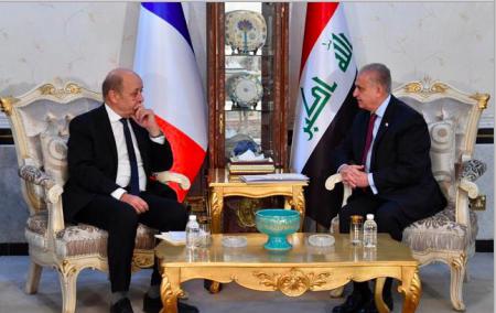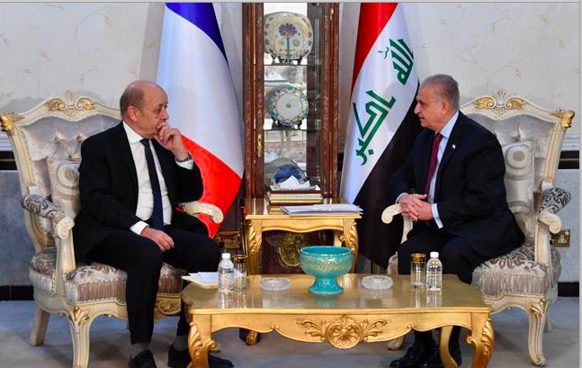 On his part, Minister Le Drian stressed the importance of bilateral relations between the two friendly countries, hoping for further development and cooperation in the economic, security, military and cultural fields, stressing France's full support to guarantee Iraq's unity, security and sovereignty.