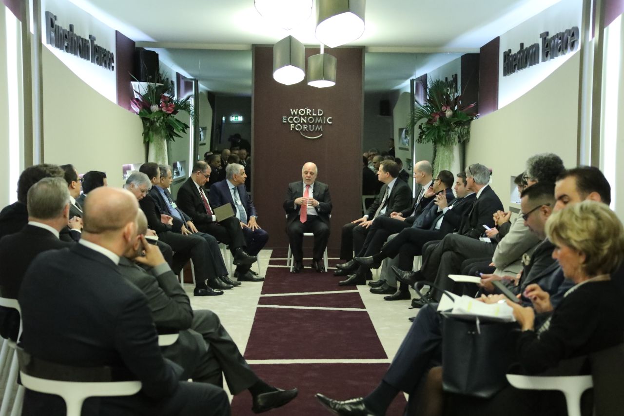 .His Excellency Prime Minister Dr. Haider Al-Abadi has met, in Davos, the heads of the largest international investment companies and major investors in various fields to mobilize support for Iraq before the conference on reconstruction in Iraq, to be held in Kuwait.