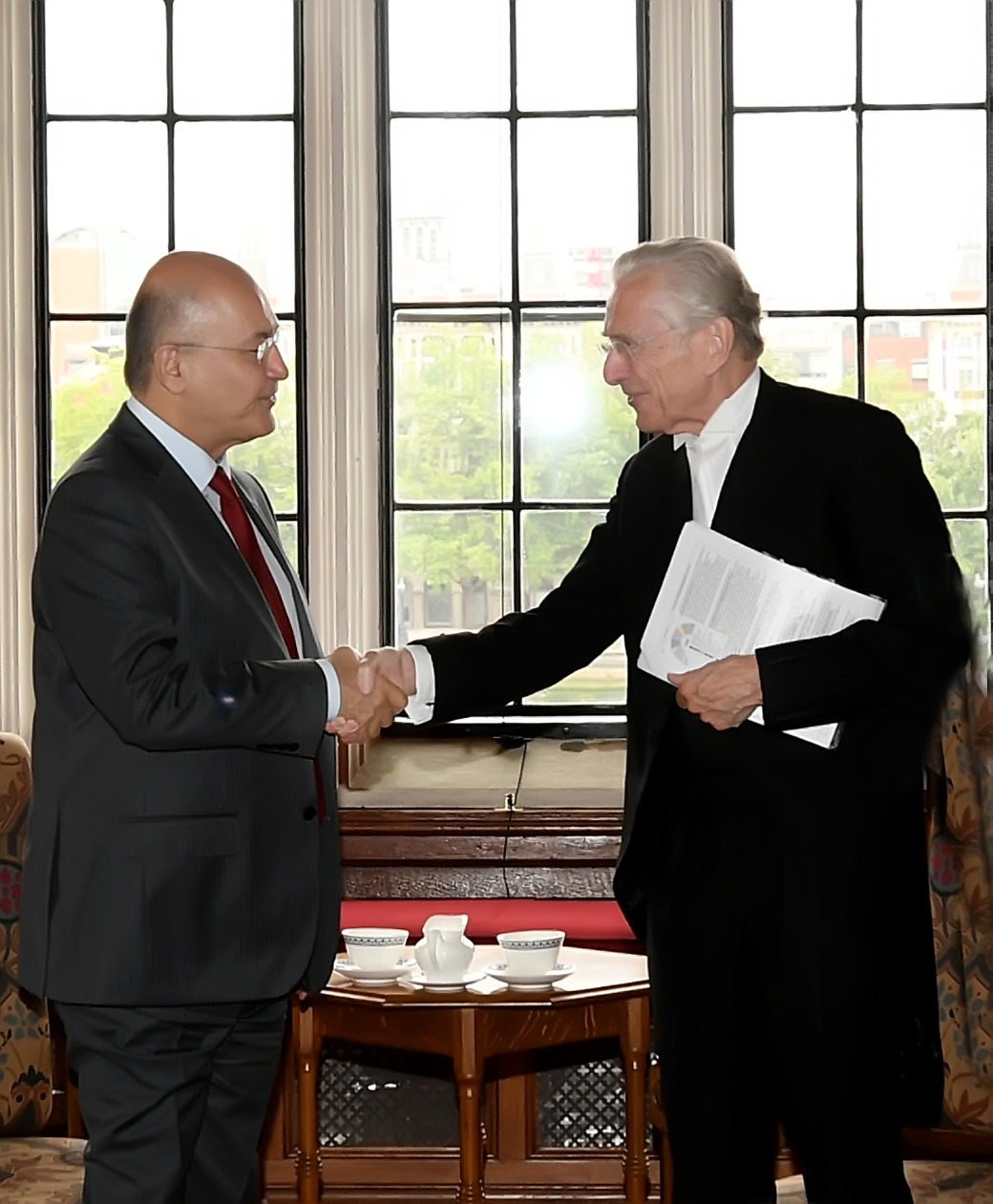 H.E. President of the Republic Dr. Barham Salih met with the Lord Speaker of the British House of Lords Peter Norman Fowler while he was paying a visit to the House of Lords of the United Kingdom, in London, on Wednesday's today, June 26, 2019.