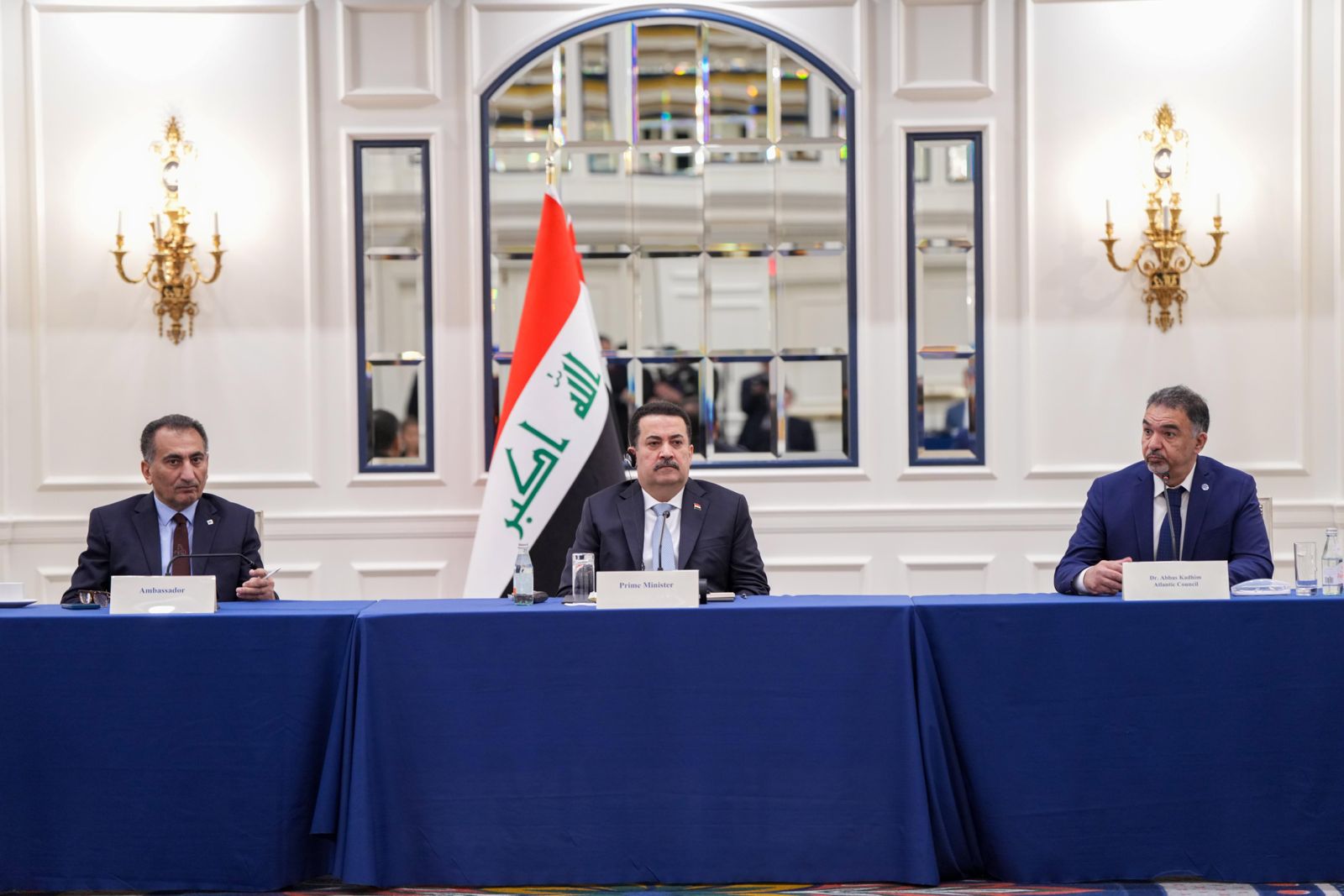 Prime Minister Mohammed S. Al-Sudani received representatives of research centers specialized in Iraq and the region at his residence in Washington. The meeting took place on the sidelines of his official visit to the United States.