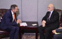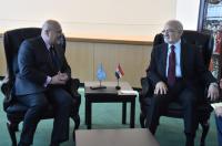 Iraqi Foreign Minister Dr. Ibrahim Al-Jaafari met with Mr. Mohammed Ali Al-Hakim, Deputy Secretary-General of the United Nations and Executive Director of the Economic and Social Commission for Western Asia (ESCWA) on the margins of the 73rd session of the UN General Assembly in New York and reviewed the overall situation in the Iraqi arena.