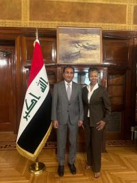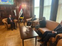 Amb. Al Khirullah Meets with Mrs. Lee SatterfieldAmbassador Nazar Al Khirullah exchanged views with Mrs. Lee Satterfield on activating scientific and cultural ties under Strategic Framework Agreement SFA by broadening cooperation through activating scholarship programs and training for Iraqis in US universities. |